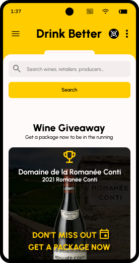 The Drink Better app is designed to give you easy access to all the rewards and discounts for our partners, retailers and merchants your membership provides.You can also chat with our wine concierge to receive food and wine pairings, discover information about wines, create a taste profile, and even create a wish list.Don't forget our regular unicorn wine giveaways.